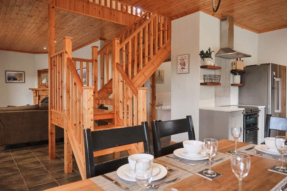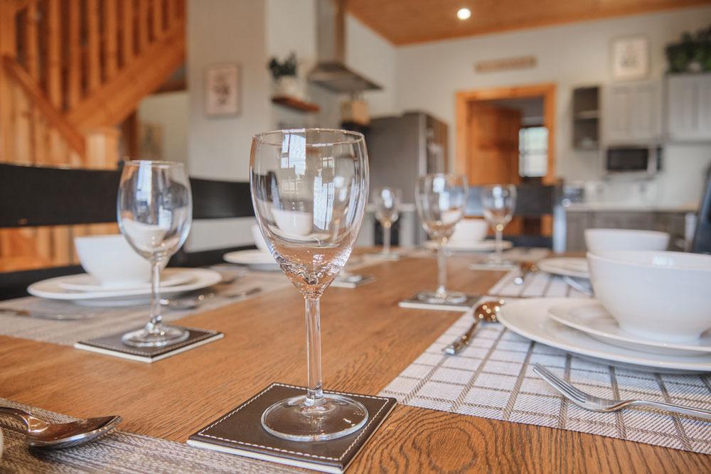 - dining area enjoys lake and mountain views