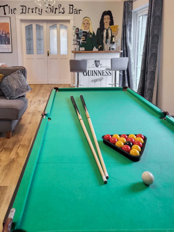 Set along the wild Atlantic way, St Michael’s offers a spacious, relaxing and unique space. Sleeping up to 12, guests can enjoy a soak in the hot tub, whilst others can prepare a feast on the BBQ or play pool in our very own Derry Girls bar.