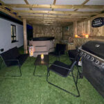 - patio area with hot tub